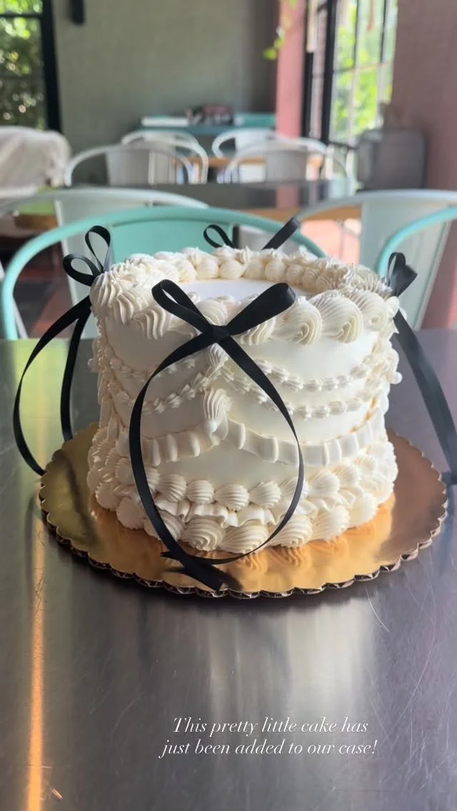 A 2-layer beautiful all white vintage heart cake with black bows is a true classic. Classic elegance at its finest. The cake will be made just like the picture. If you need to make any changes, please email us at katiecakesdessert@gmail.com